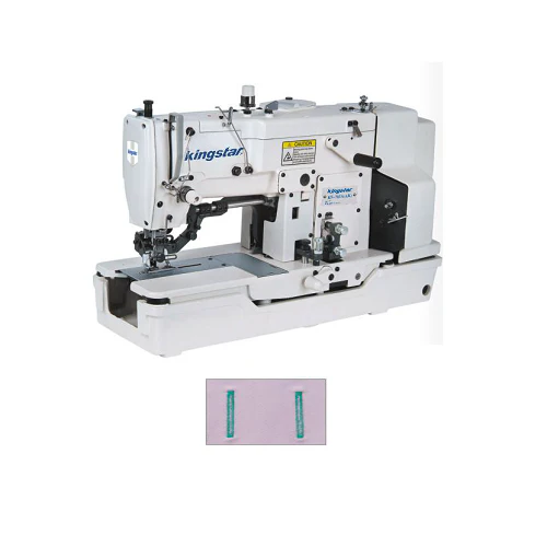 Highspeed Lockstitch Straight Buttonholing Machine. Model: KS781. Presser Foot Elevated to 12mm for thicker fabrics. Enhanced automatic lubrication system. 3600 Stitches Per Minute